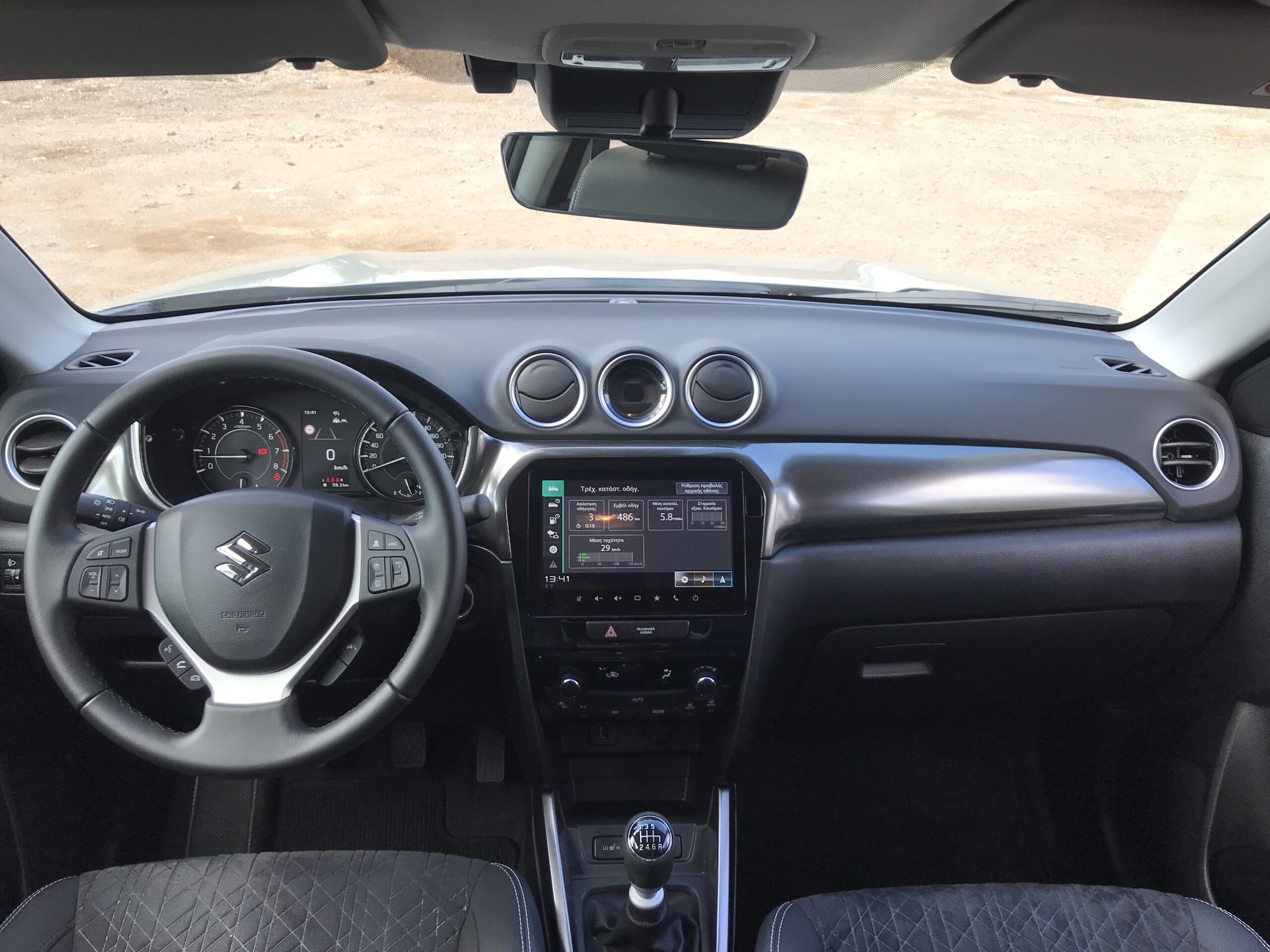 Αφού έχεις…προσπεράσει το γνώριμο, για αρκετά χρόνια, εξωτερικό, μπαίνεις στο γνωστό, δοκιμασμένο και πρακτικό εσωτερικό του Vitara. Τα πάντα είναι γνωστά, με μαλάκα πλαστικά στο επάνω μέρος του ταμπλό και τα αναπαυτικά καθίσματα να κερδίζουν τις πρώτες εντυπώσεις.