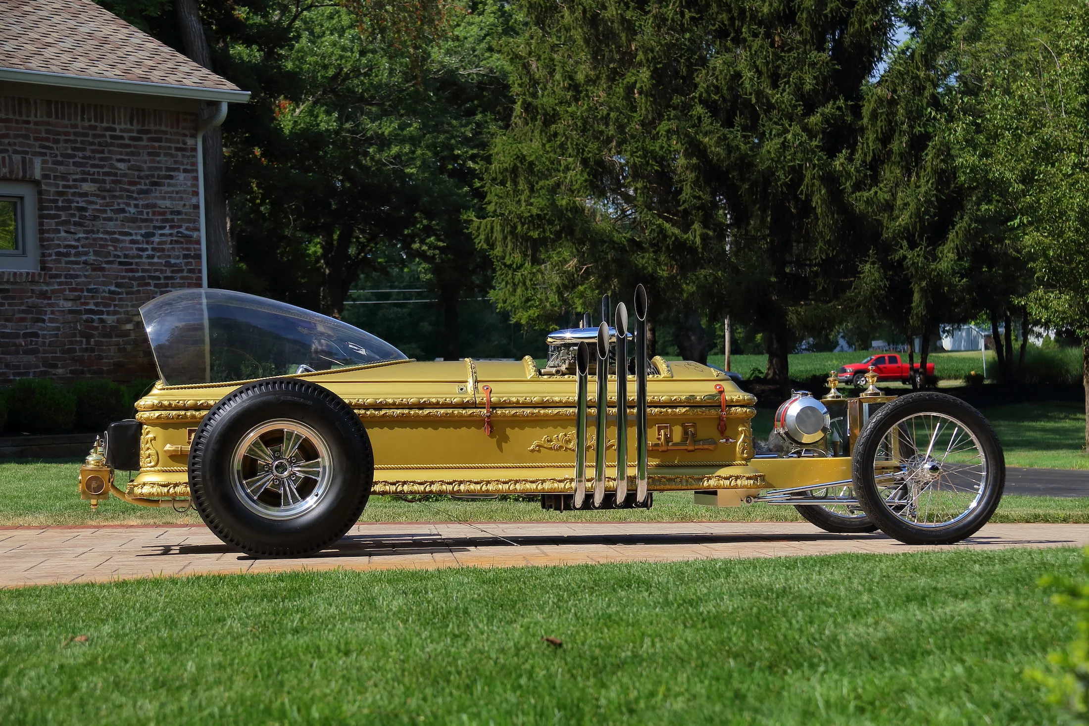 Κατασκευασμένο από πραγματικό φέρετρο από fiberglass, το DRAG-U-LA των Munsters είναι ό,τι πιο “Halloween” έχει βγει ποτέ στους κινηματογράφους. Εξοπλισμένο με V8 κινητήρα, εξατμίσεις από σωλήνες εκκλησιαστικού οργάνου και φώτα σε σχήμα αράχνης. Ένα απόλυτο κλασικό όχημα τρόμου και φαντασίας.