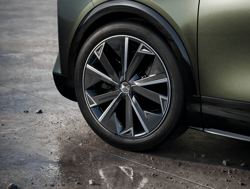 Οι αναλογίες του παραμένουν ισορροπημένες, με έντονη σχεδιαστική ταυτότητα και δυναμική παρουσία, ενώ οι ζάντες έως 21 ιντσών ενισχύουν το προφίλ του.