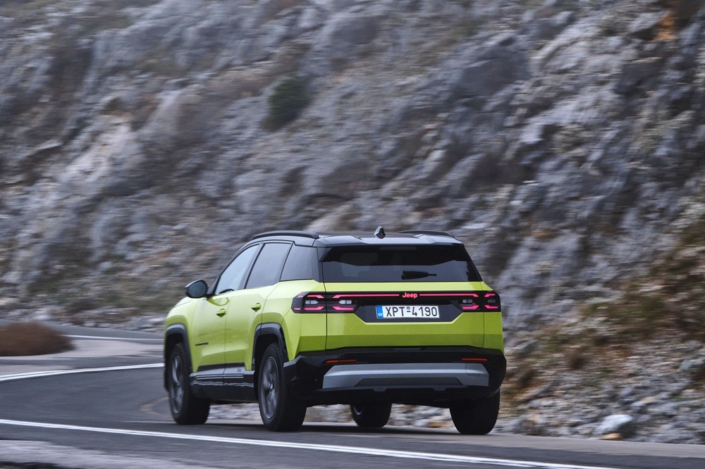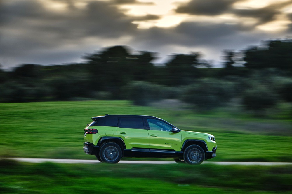 Η ανάρτηση της υβριδικής έκδοσης των 145 ίππων δείχνει ιδιαίτερα ισορροπημένη, με έμφαση στην άνεση, προσφέροντας παράλληλα εξαιρετική σταθερότητα. Οι κλίσεις στις στροφές έχουν περιοριστεί κατά 20% δίνοντας ακόμα πιο σταθερό πάτημα στο δρόμο. Έτσι, δεν γίνεται αντιληπτό το μέγεθος του Compass. Κάτι που ισχύει και για τον κινητήρα. Αρχικά ξαφνιάζεσαι στο άκουσμα ενός μεγάλου JEEP με 1200άρη σύνολο κάτω από το καπό. Αλλά οδηγώντας το διαπιστώνεις ότι μάλλον δεν χρειάζεσαι τα «πολλά κυβικά» που χαρακτήριζαν τα μοντέλα της μάρκας στο παρελθόν.