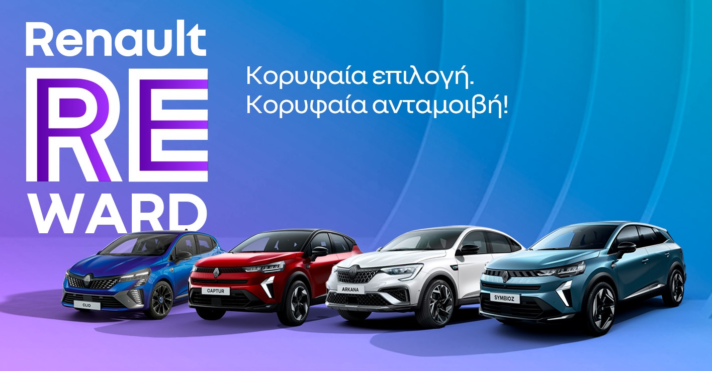 Μια ενδιαφέρουσα πρόταση για…γαλλικό δώρο αυτές τις γιορτές είναι το RENAULT Reward, το οποίο προσφέρει ένα από τα Clio, Captur, Arkana, Symbioz, με όφελος έως 2.500 ευρώ.