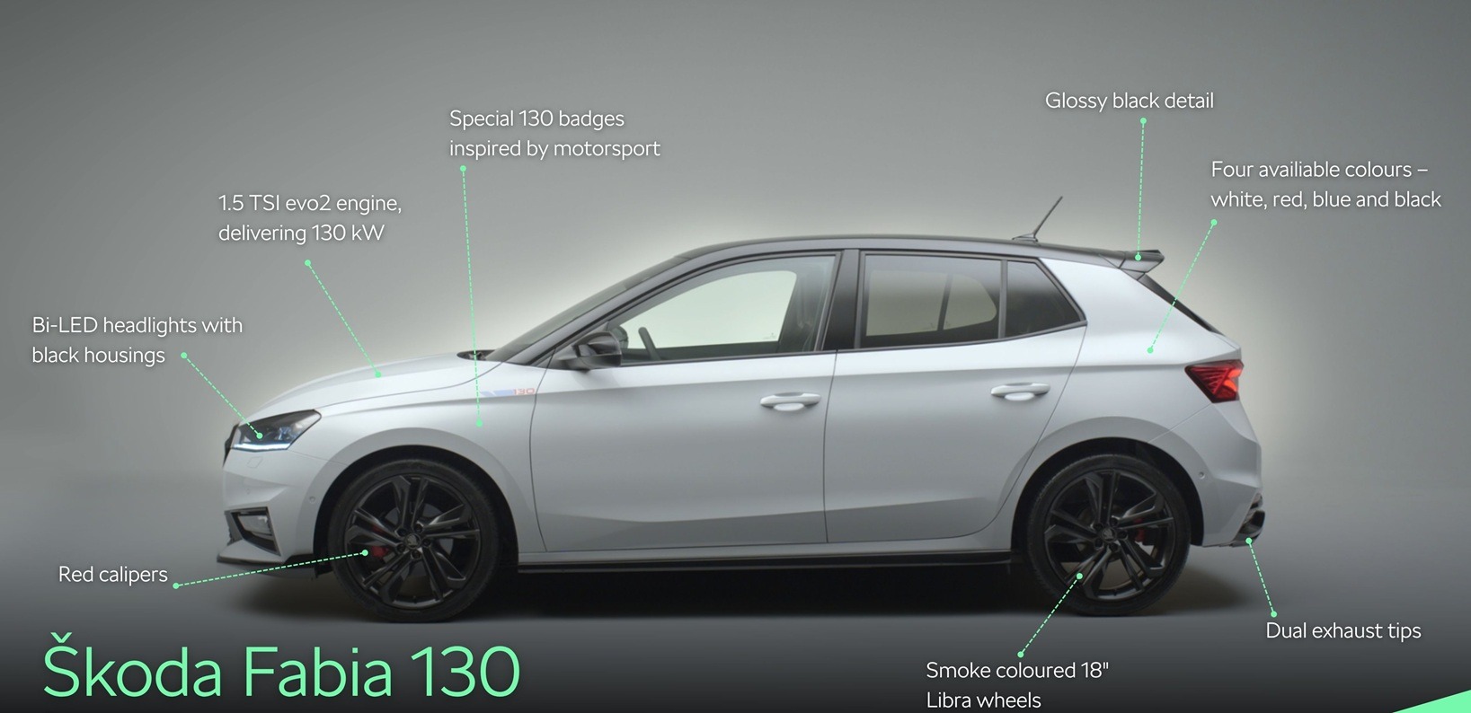 Η επετειακή έκδοση 130, είναι το ταχύτερο SKODA Fabia παραγωγής, όλων των εποχών, ενώ δεν κρύβει τις επιρροές του από το αγωνιστικό Fabia Rally2.